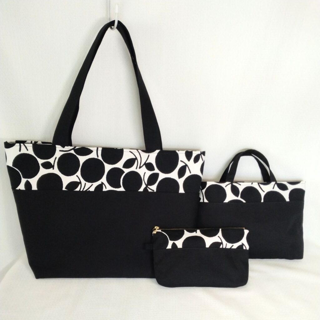 同柄の、肩掛けトートバッグ・バッグインバッグ・ファスナーポーチ。単品でも、揃えても。自分のために選ぶ楽しさを…。