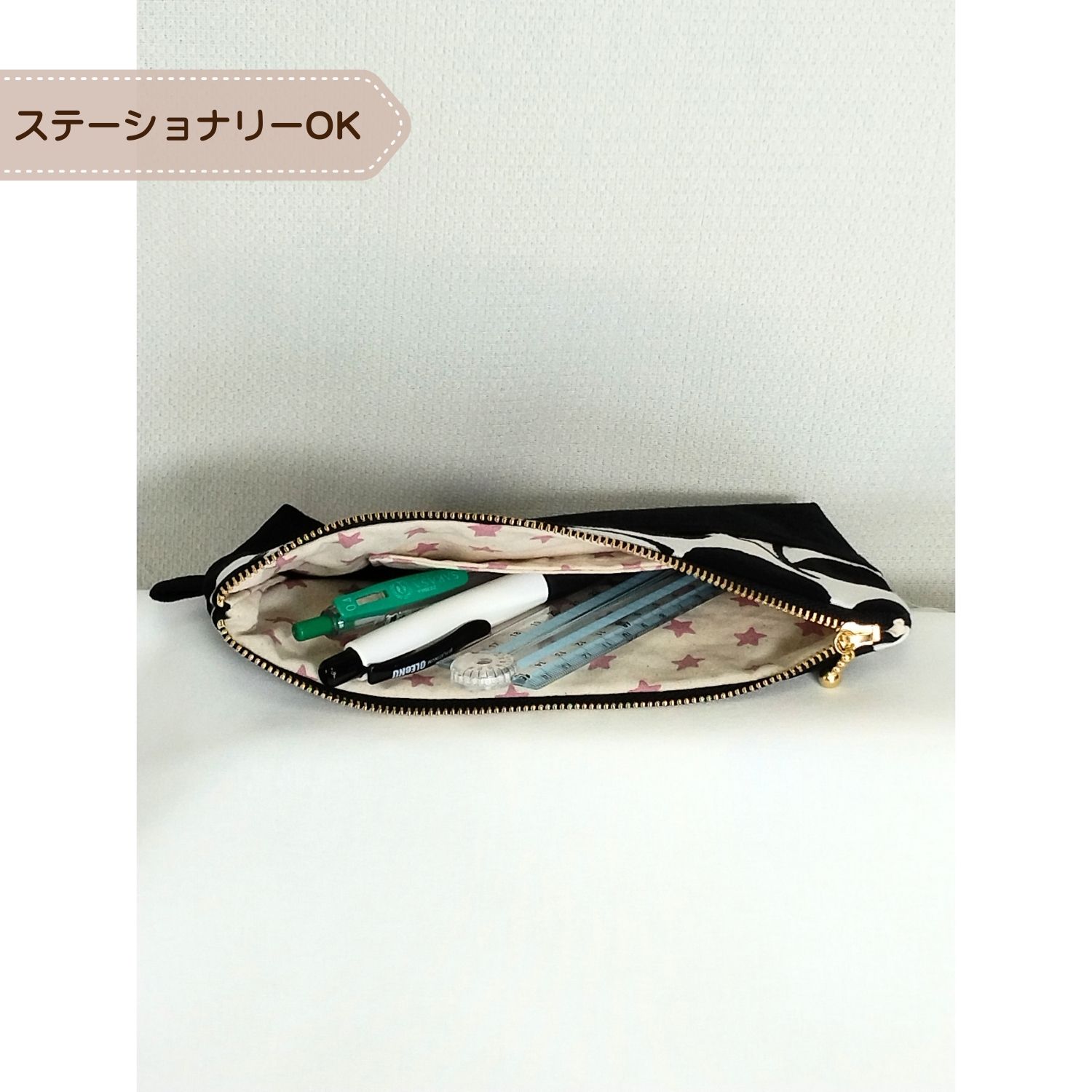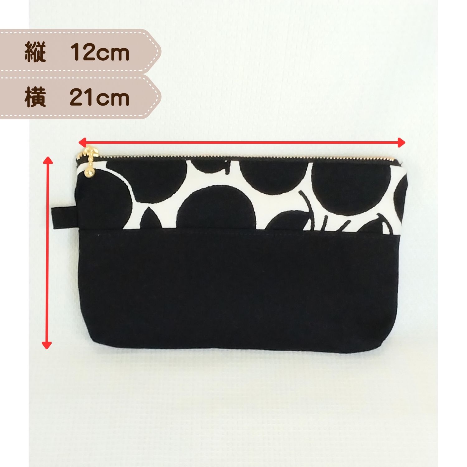 わたし時間の20cmマルチポーチ|裏地・内ポケット付(black)
