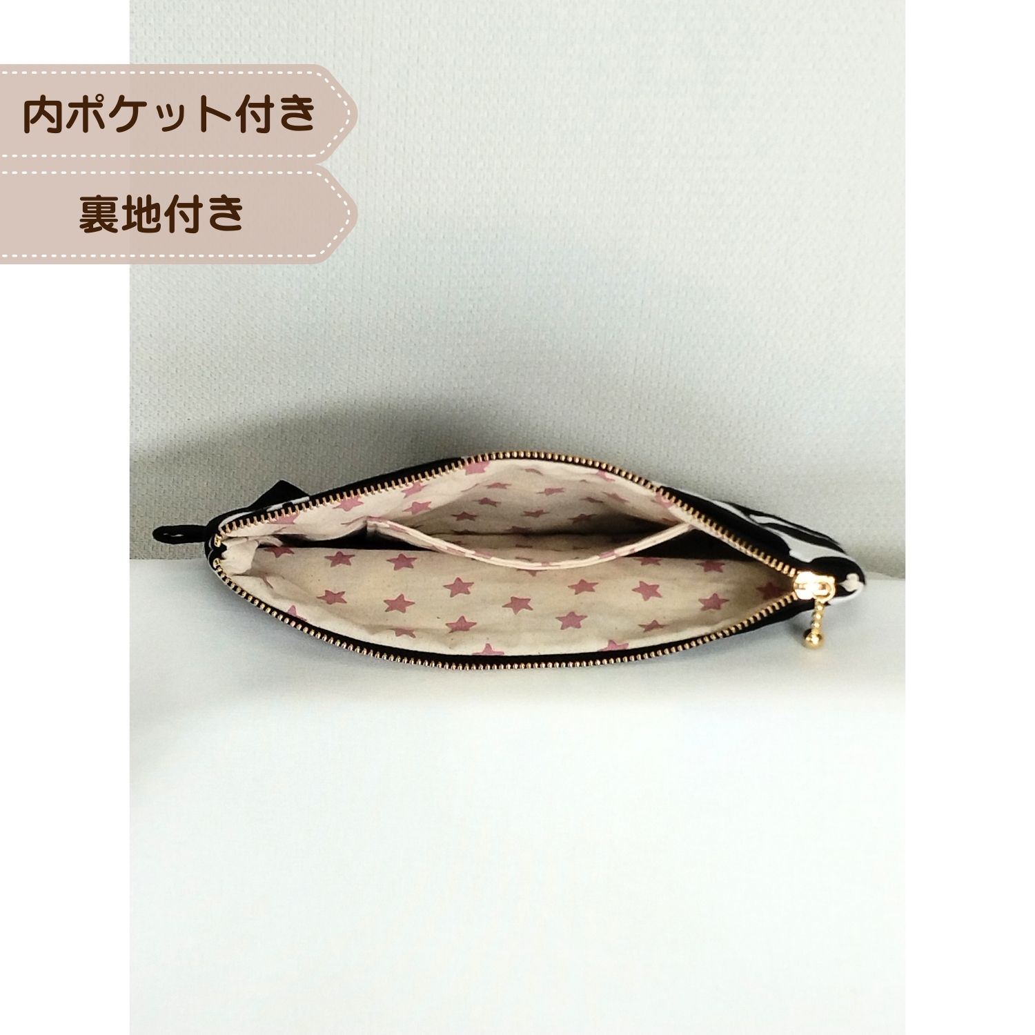 裏地付、内ポケット付。長くお使いいただけますよう、ひとつひとつ丁寧にお仕立てしています。