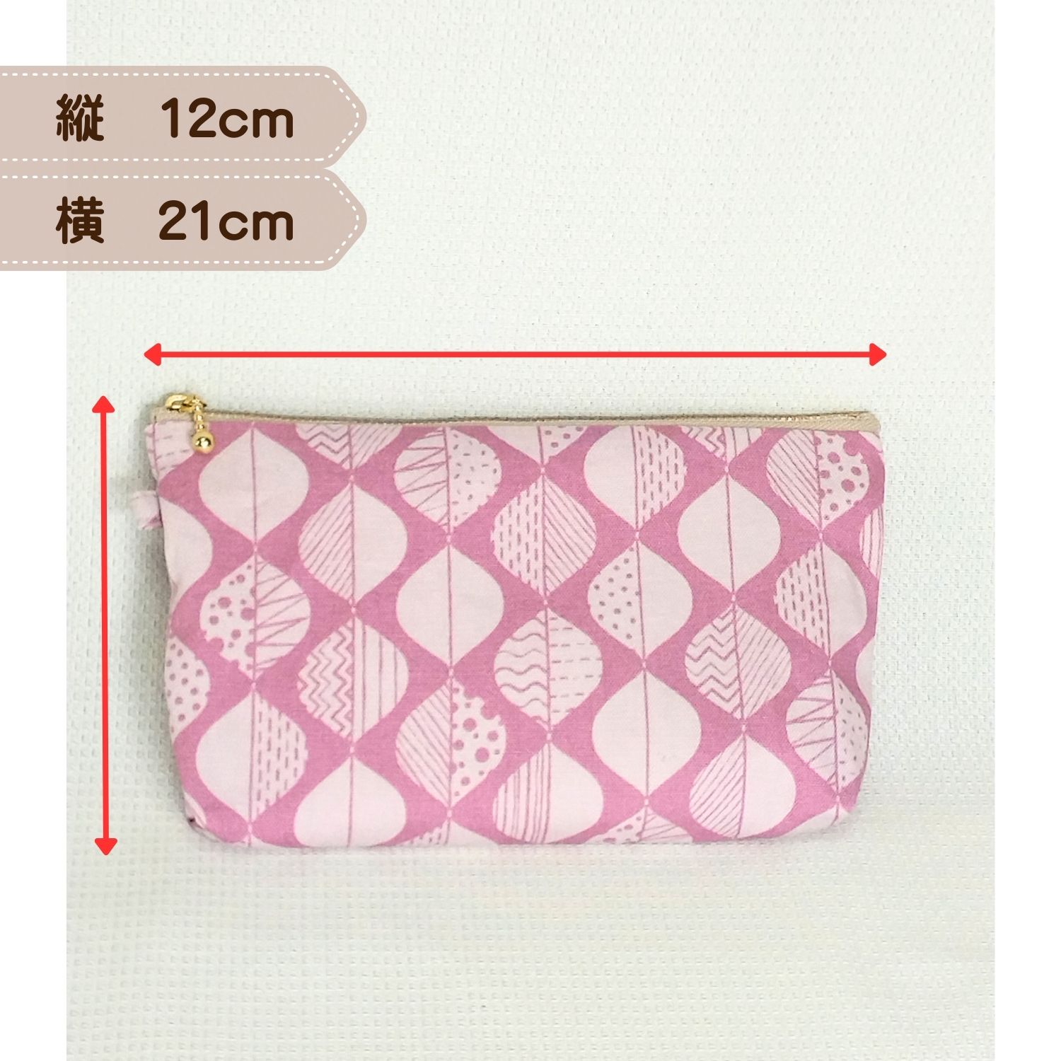 わたし時間の20cmマルチポーチ|裏地付き(幾何学・ピンク)