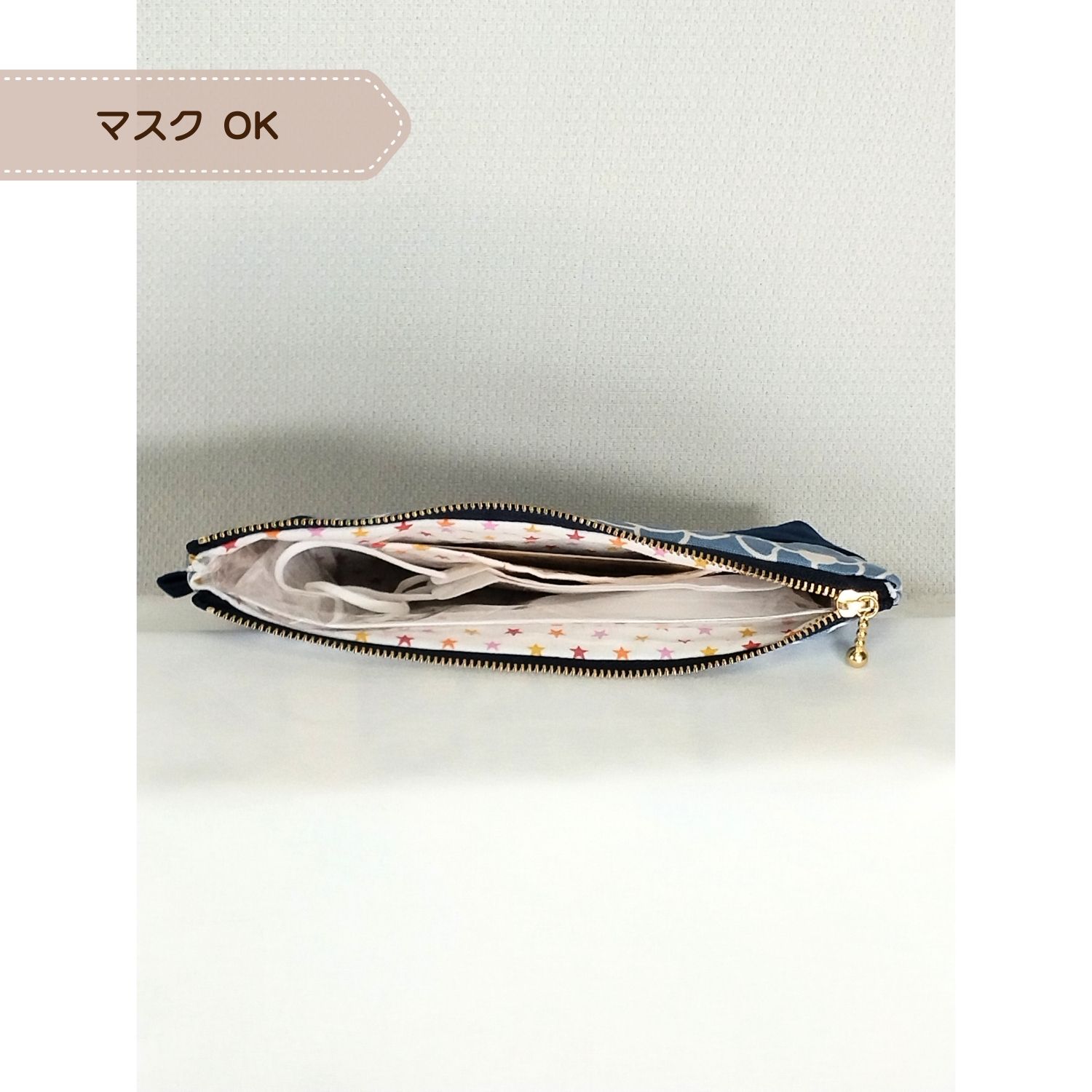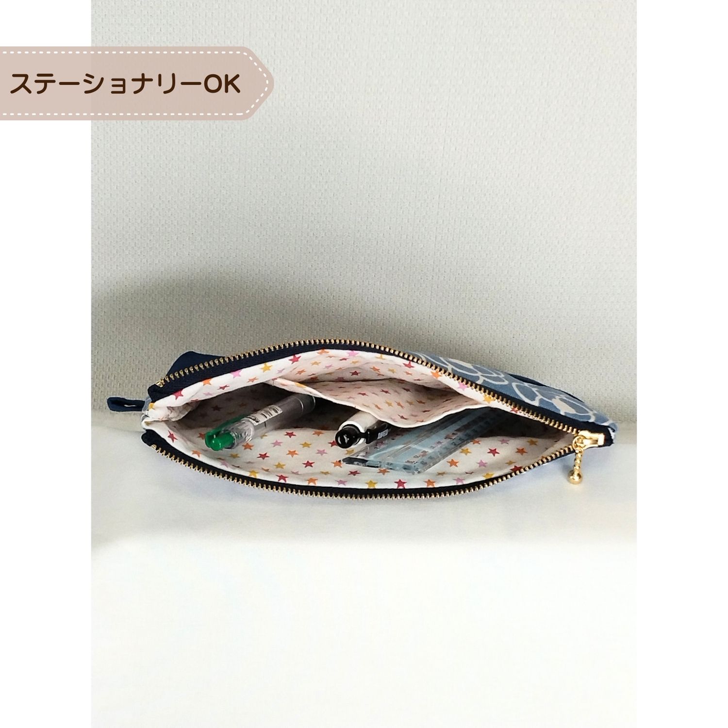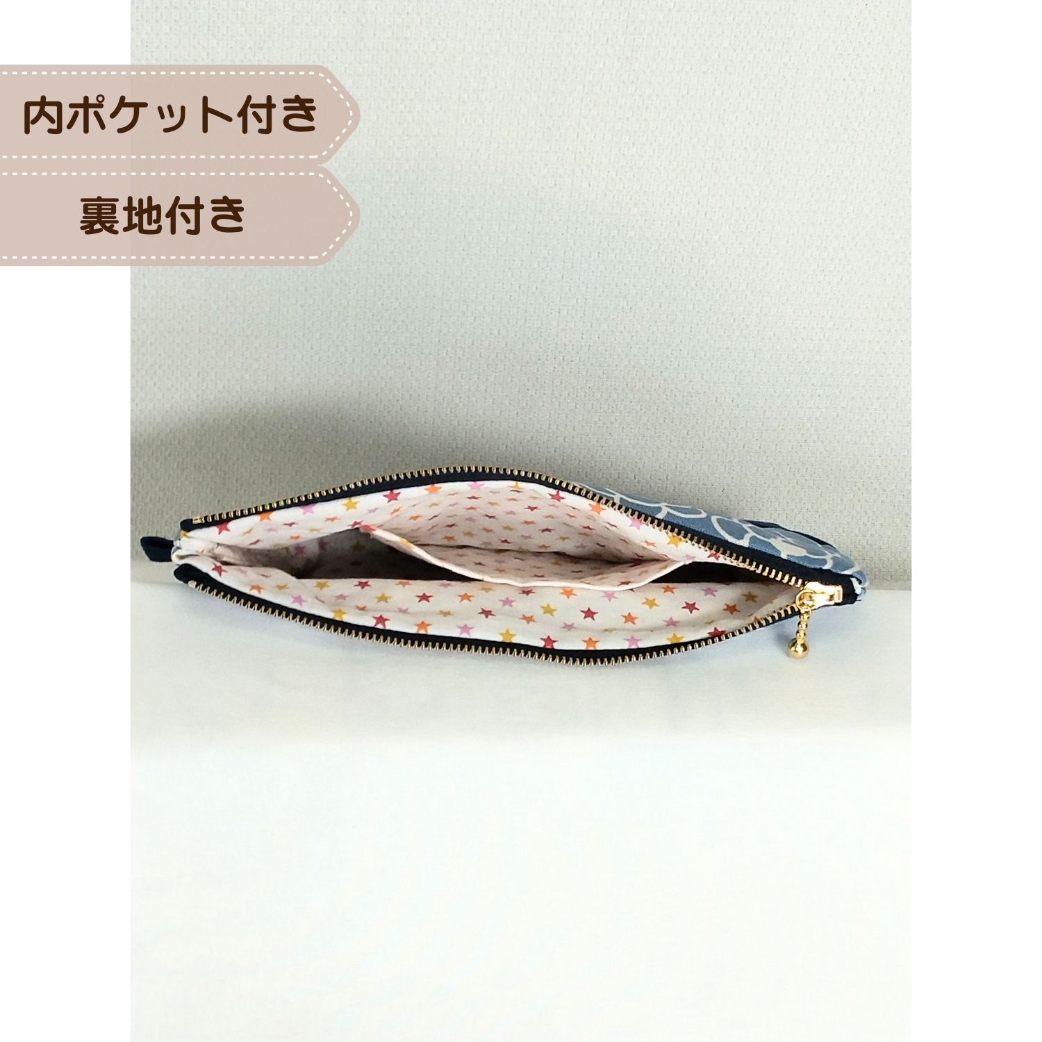 わたし時間の20cmマルチポーチ|裏地・内ポケット付(navy)