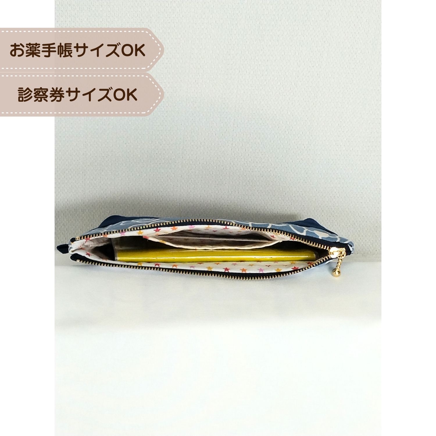 お薬手帳や診察券、予備のマスク、通帳、ペンなどのステーショナリーグッズなど 使いやすい大きさです。